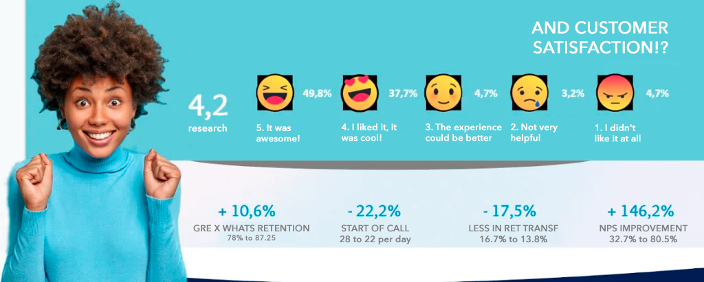 RETENTION services provided through WhatsApp for a differentiated customer care journey, avoiding dissatisfaction due to lack of resolution (return instructions or drawn-out solution periods).
